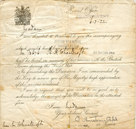 | Harold served with the 19th Bn., Royal Welch
